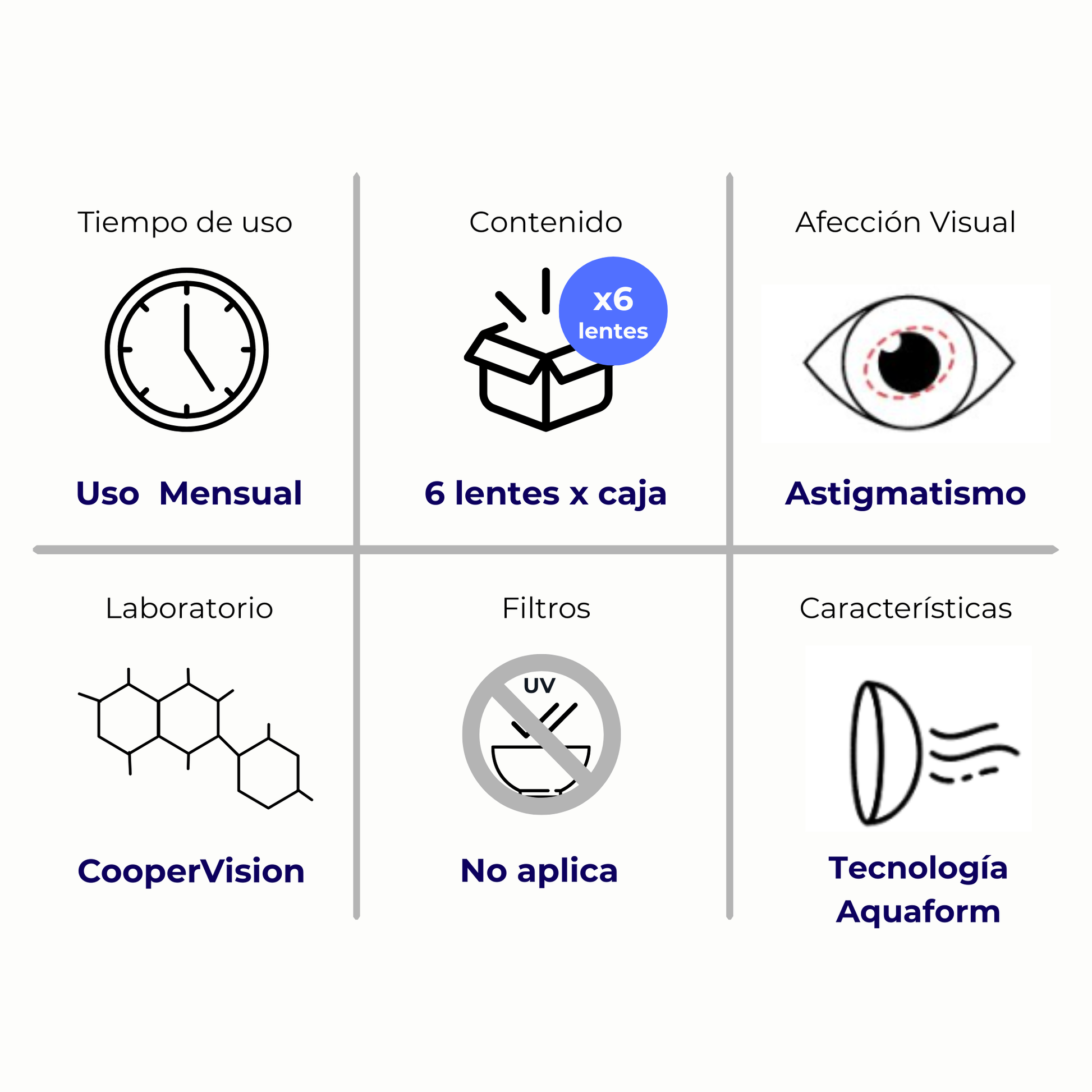 Uso por lente: Mensual Caja con 6 lentes (6 unidades)